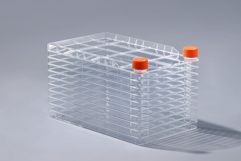 細(xì)胞工廠利用多層的堆疊結(jié)構(gòu),在緊湊的空間中實現(xiàn)了大面積的細(xì)胞培養(yǎng)。相對于細(xì)胞培養(yǎng)瓶,擴大了細(xì)胞接種數(shù)量,在大規(guī)模細(xì)胞培養(yǎng)中的作用也日益凸顯。